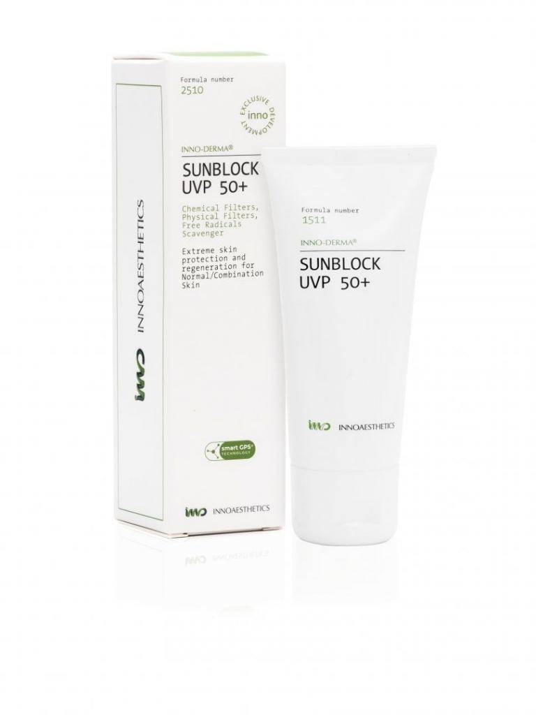 • INNO-DERMA Sunblock UVP 50+ : combina diferentes tipos de filtro solar para proteger tu piel de los rayos UVB y UVA. Esta crema es tu compañera ideal tanto para ir a la playa, como para pasear durante el día.