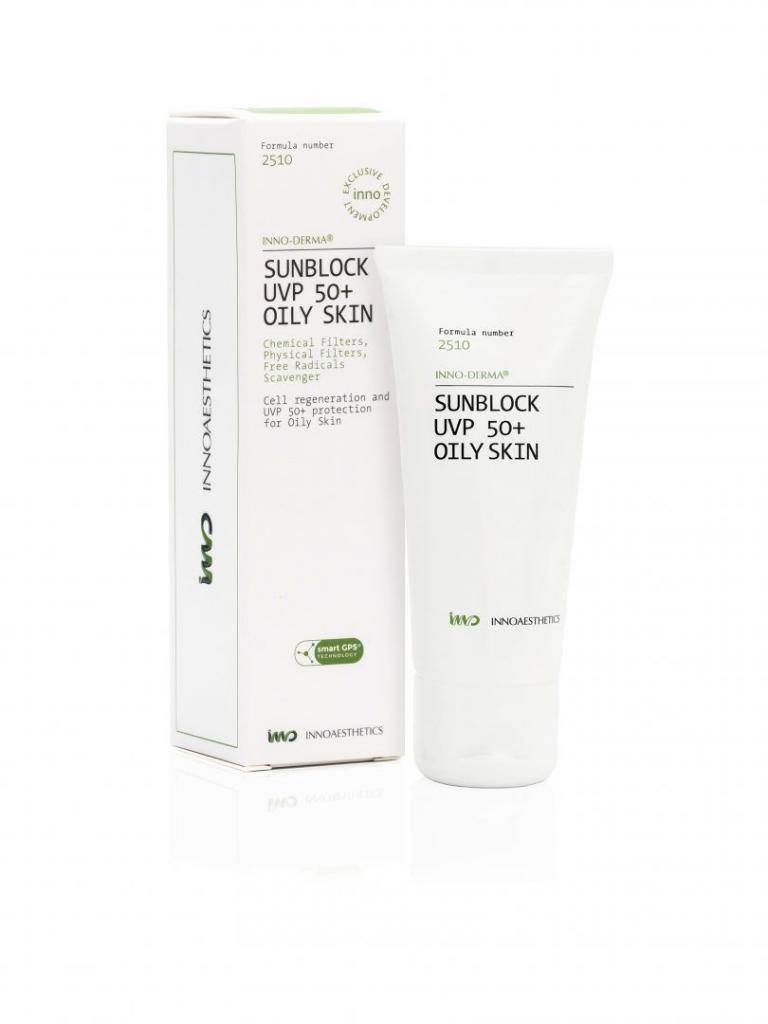 • INNO-DERMA Sunblock UVP 50+ Oily Skin: protección solar de amplio espectro de uso específico para pieles grasas. Además, protege de los rayos UVB y UVA, por lo que también es perfecta para utilizar tanto en la playa como en la ciudad.